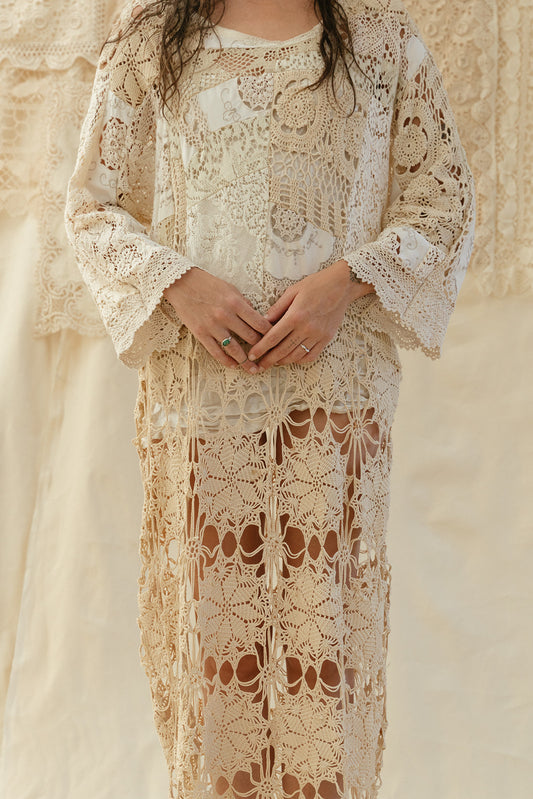 A visual love letter that transcends time itself using Vintage lace and plant dyed silks.