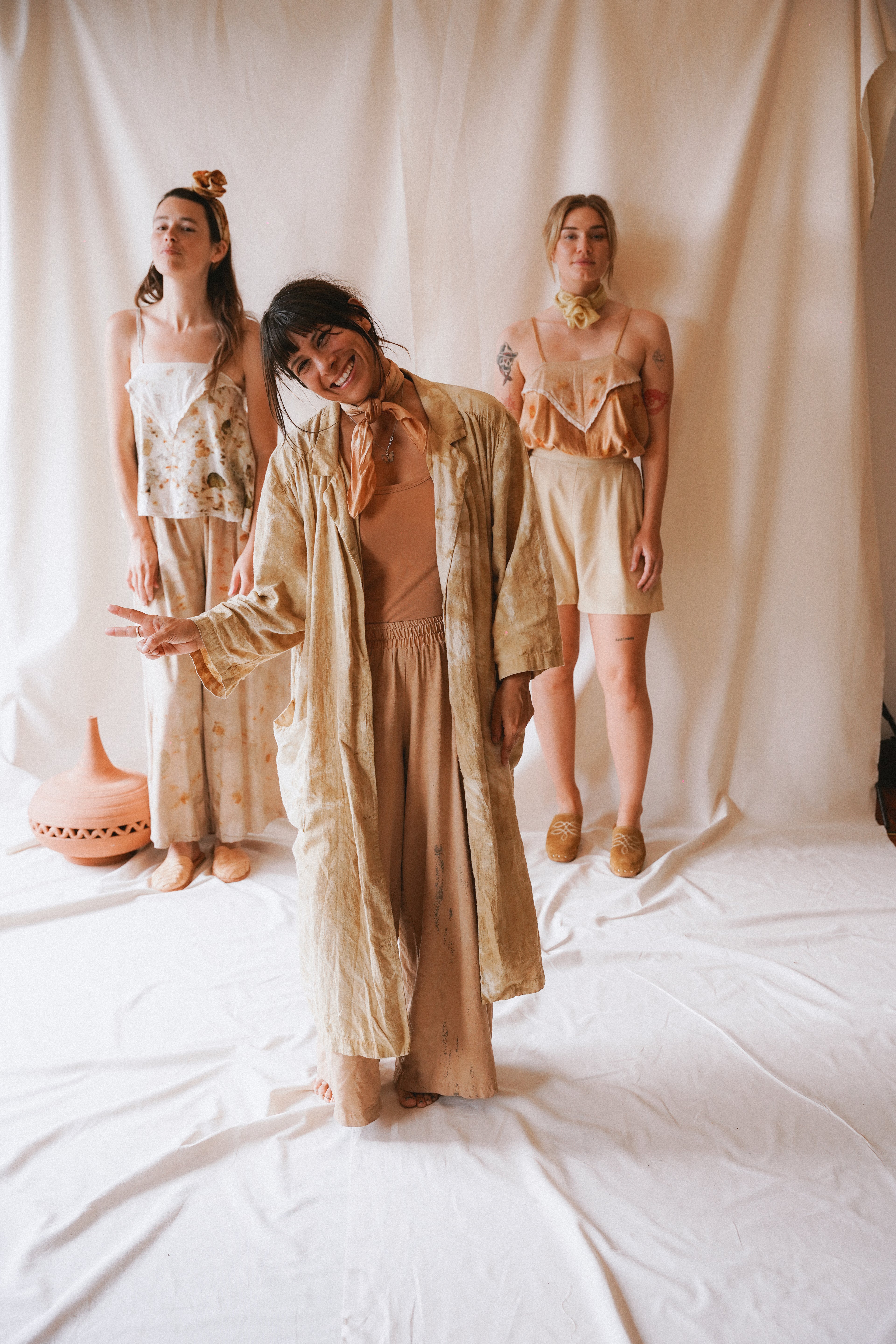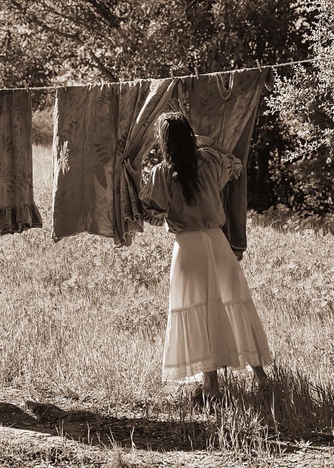 A foundation of earth-born color is applied, drawn from flowers, bark, seeds, and leaves. This first wash of pigment grounds the garment with a foundation of tone, ready to be built upon.