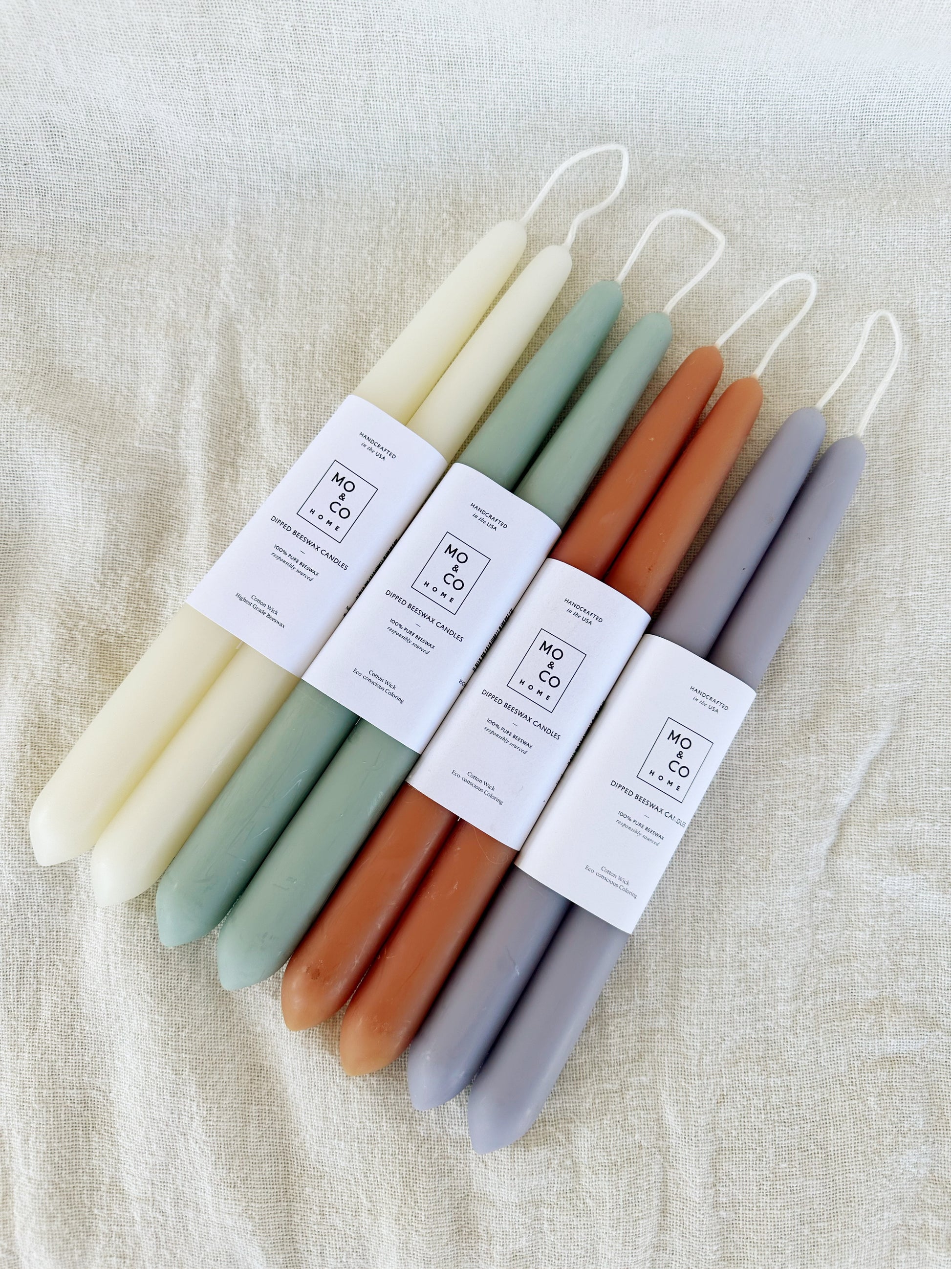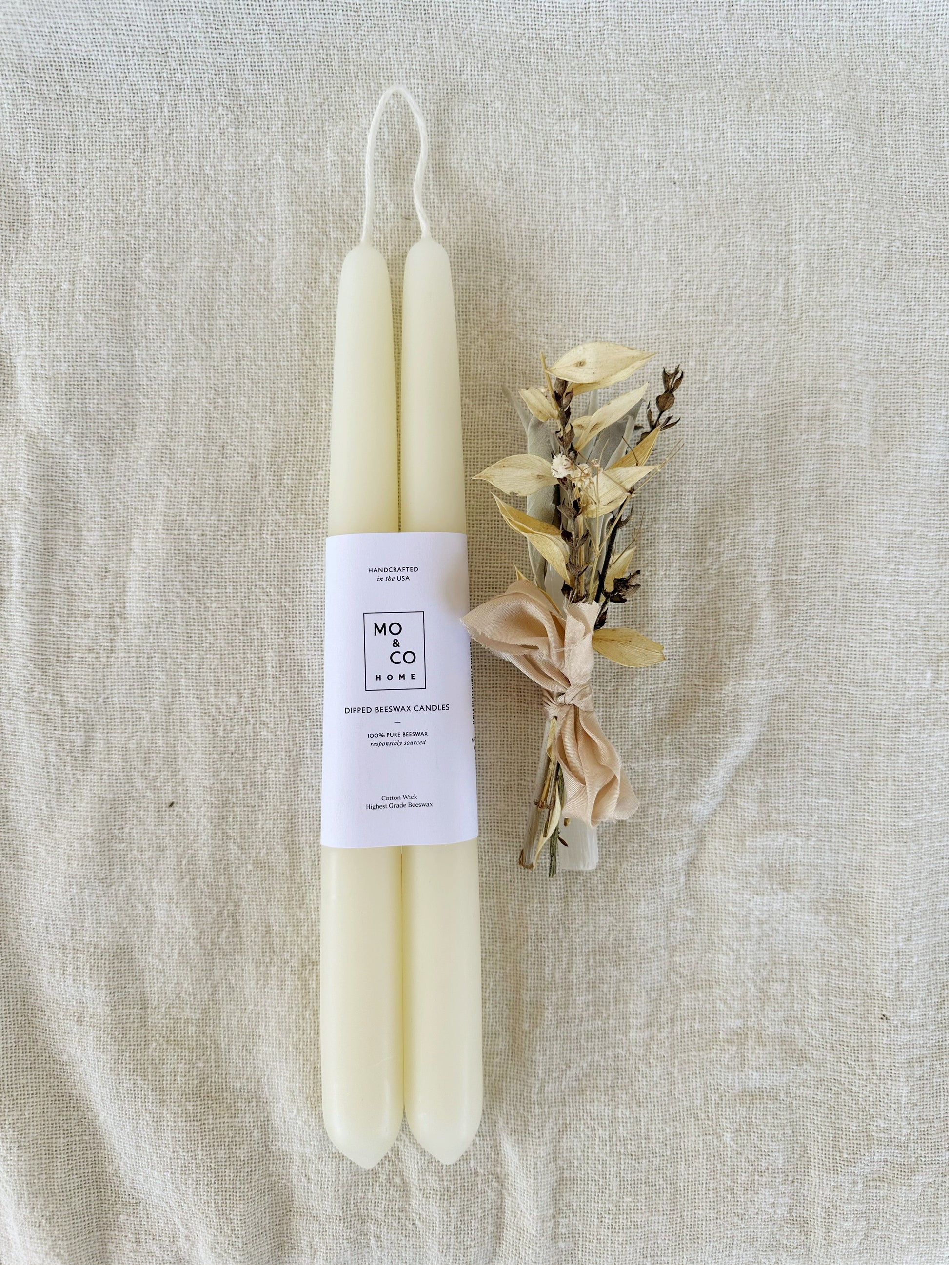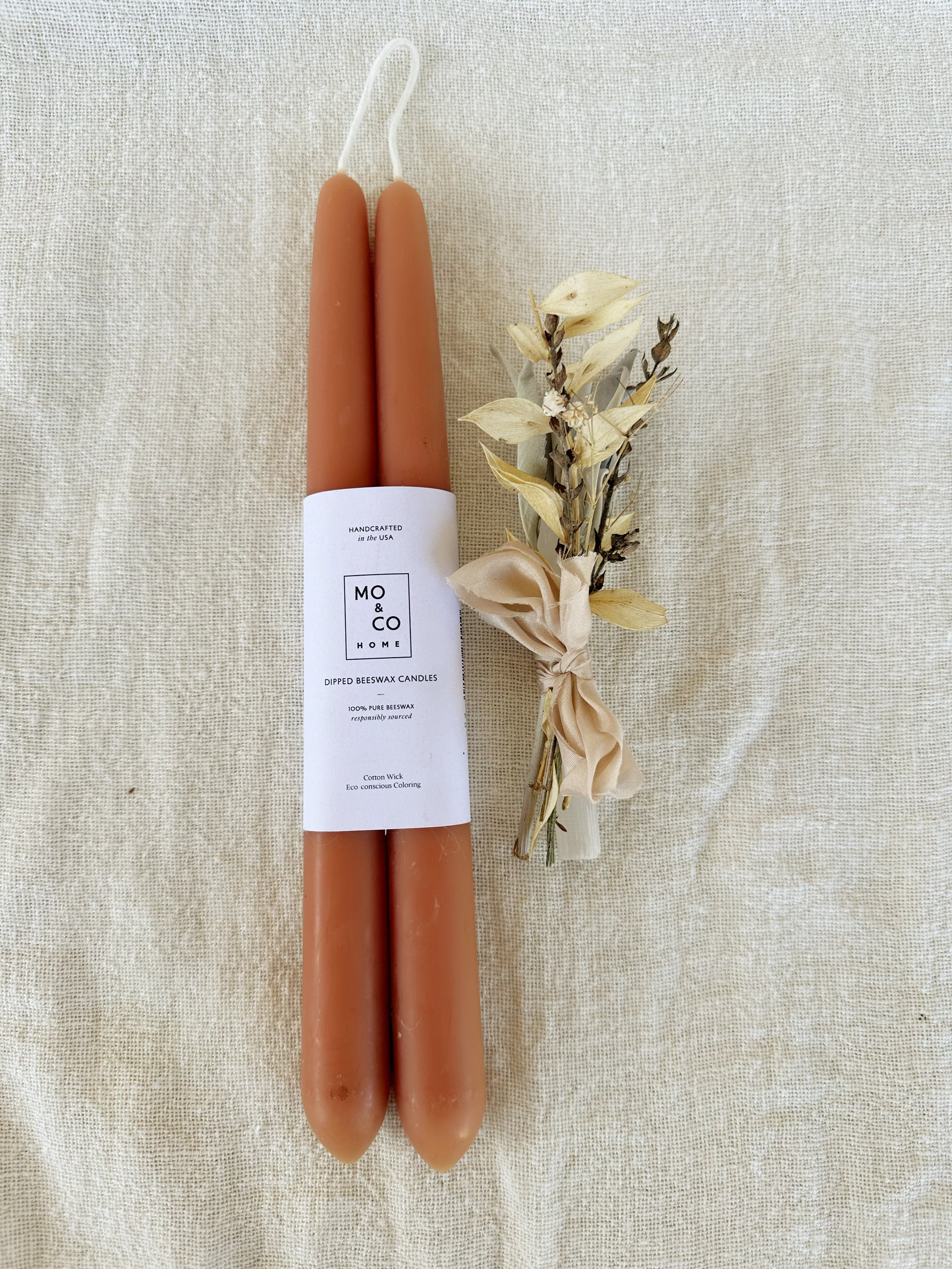 Each candle is crafted with intention, hand-dipped over 25 times in pure golden beeswax with a simple cotton wick.