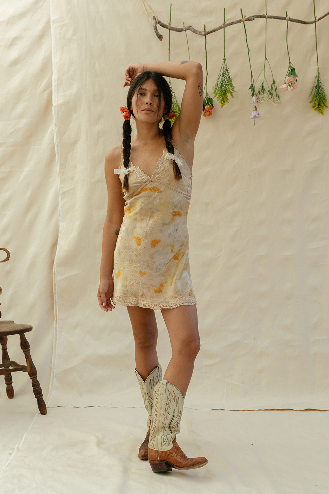 Our Classic Star Freya slip dress made mini. Easy to dress up or down. Plant dyed making each one its own unique piece. Wear it with a jean jacket and boots for a night out , or dress it up for that fancy night out