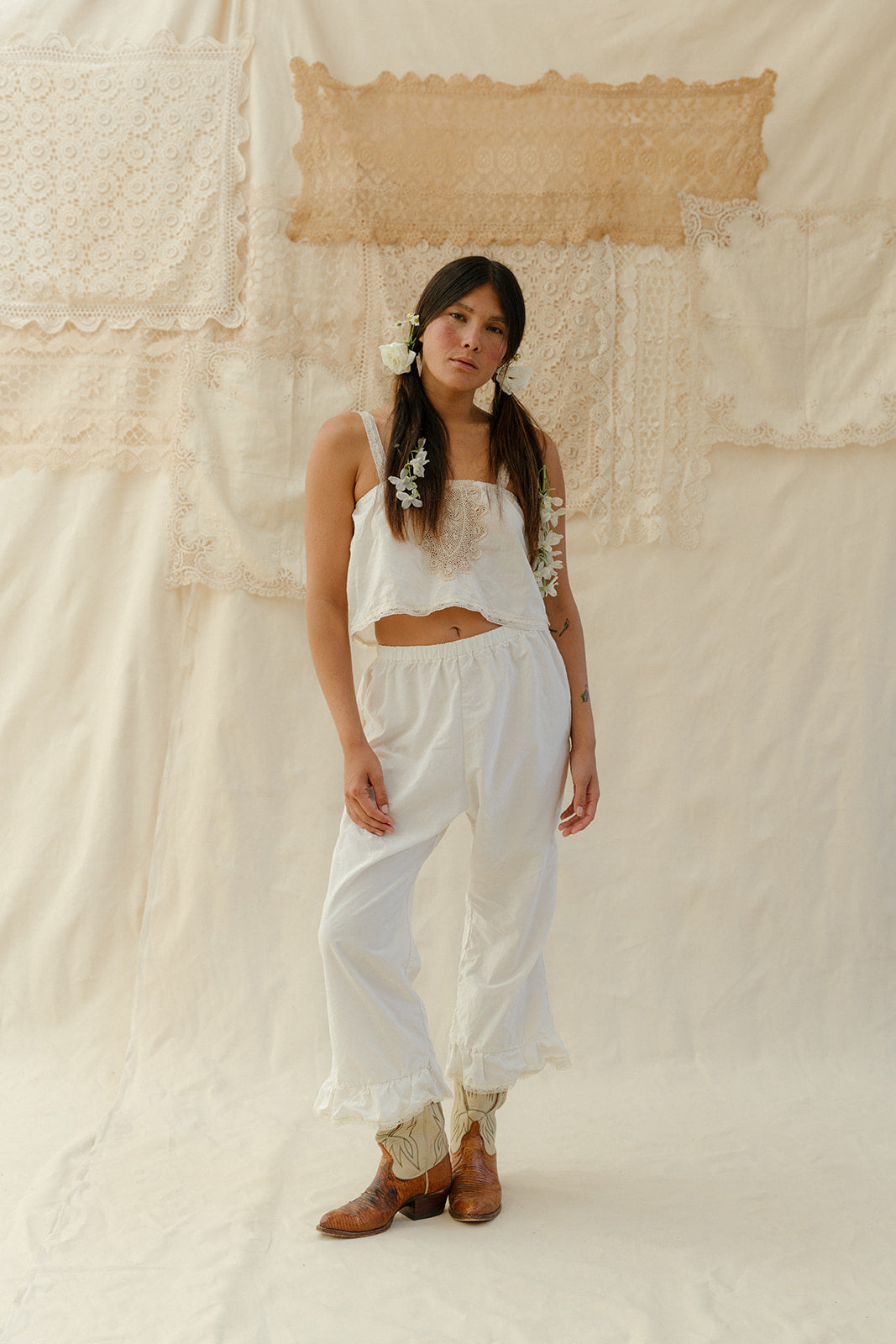 Our old to the old school bloomers. These pants are a go to for every day, comfortable. Great with sandals by day and boots by night. Cute under skirts, a fun layering piece.
