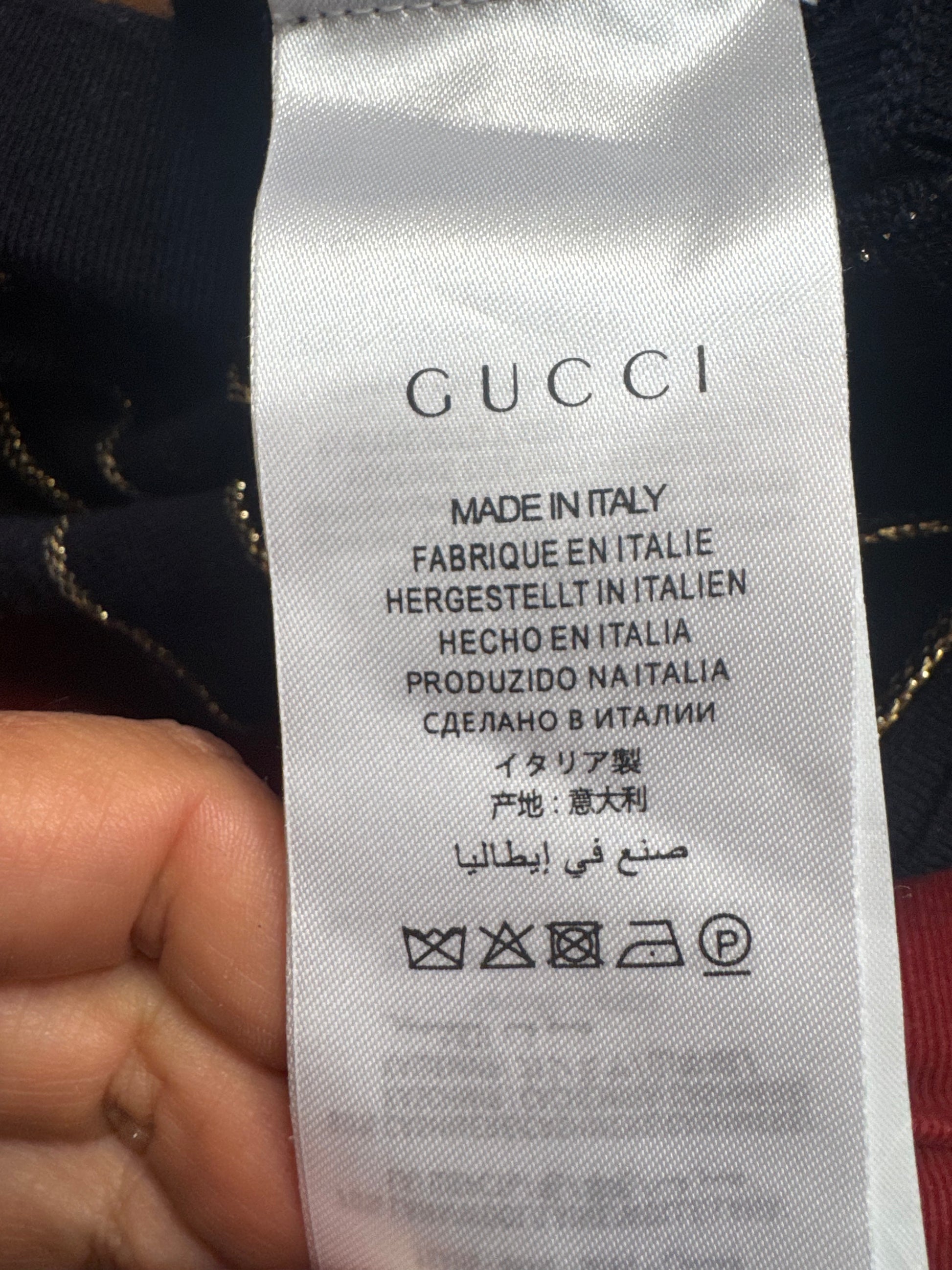 The midi length offers versatile styling options, making it appropriate for both professional and elevated casual settings. The gold striping catches the light beautifully, adding subtle glamour without being ostentatiousโa hallmark of Gucciโs refined aesthetic.