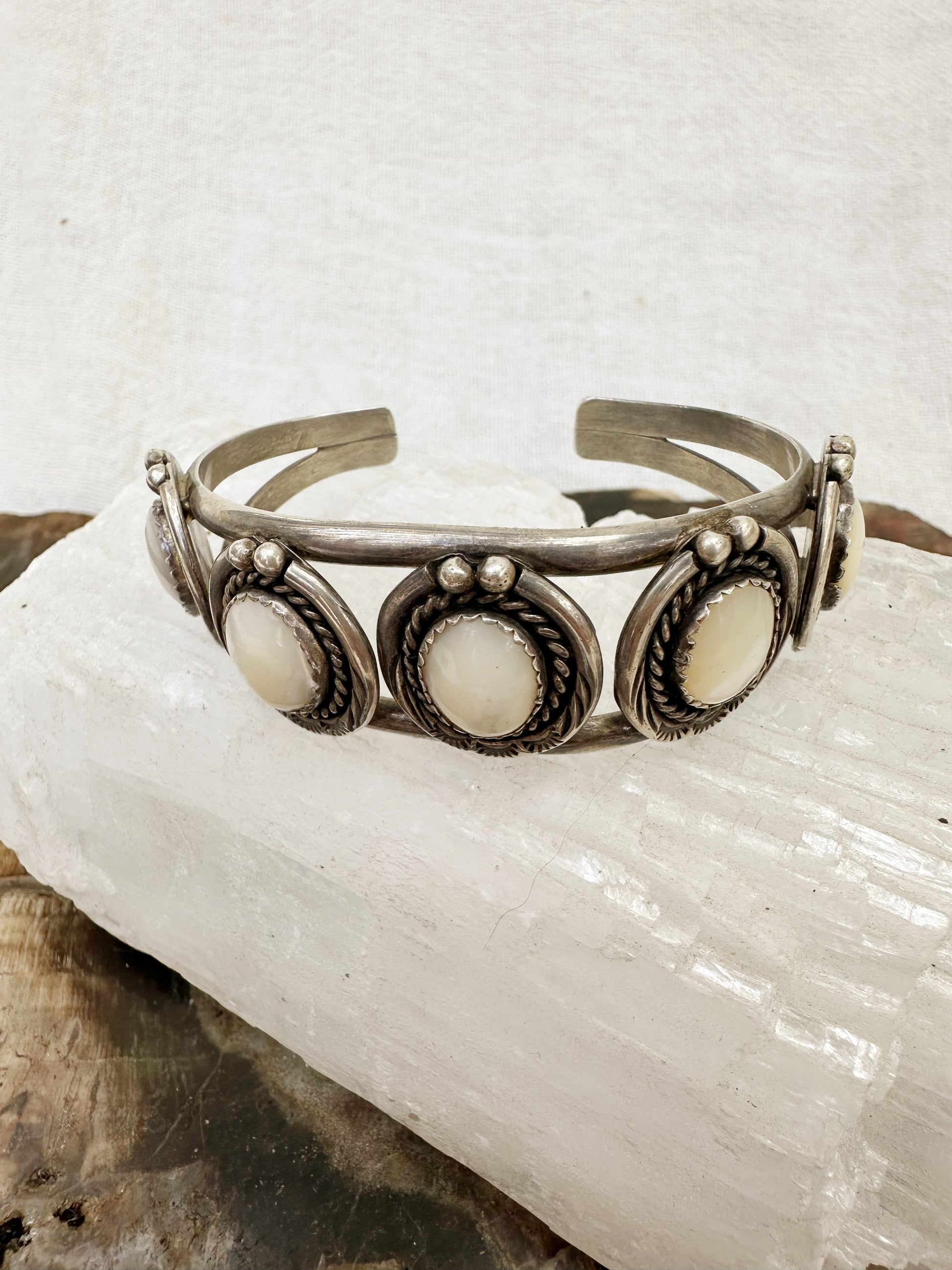 Vintage Native American Sterling Silver & Mother of Pearl Cuff Bracelet